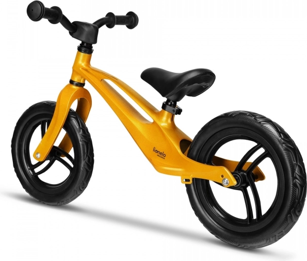 Loopfiets Bart Goldie is de ideale keuze voor kinderen vanaf 2 jaar. Dankzij het moderne magnesiumframe weegt hij slechts 3 kg, wat het hanteren en het leren van evenwicht vergemakkelijkt. De in hoogte verstelbare zitting en het stuur groeien mee met het kind en de EVA-banden zorgen voor een veilige en soepele rit.