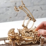 Bouw een sfeervolle spoorwegoverslag en zie hoe het hele model dankzij slimme mechanismen tot leven komt. De manipulator en de wagon kunnen over twee rechte baanvakken samen of afzonderlijk bewegen, de kraan tilt de kistjes echt op en het gedetailleerde skelet van de hal maakt het tafereel compleet. Ideaal voor liefhebbers van mechanica, modelbouw en design-houten bouwpakketten.