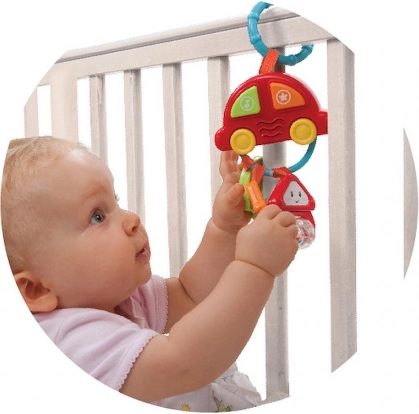 Autootje met sleutels is een kleurrijk speeltje dat de aandacht van elke baby trekt en hun spel en ontwikkeling stimuleert. Dit speeltje kan ook dienen als bijtring.