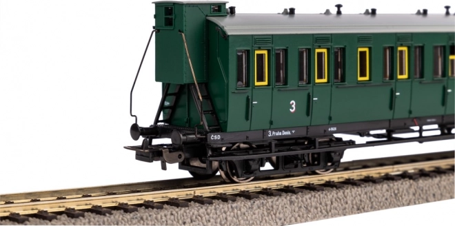 Model van een vierassig ČSD-personenrijtuig met conducteurscabine uit tijdperk III dat elke modelbouwer zal bekoren. Biedt gedetailleerde afwerking, korte NEM-koppeling en getrouwe H0-schaal voor soepel bedrijf en een realistische uitstraling in je collectie.