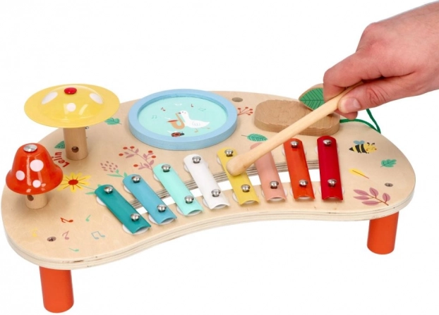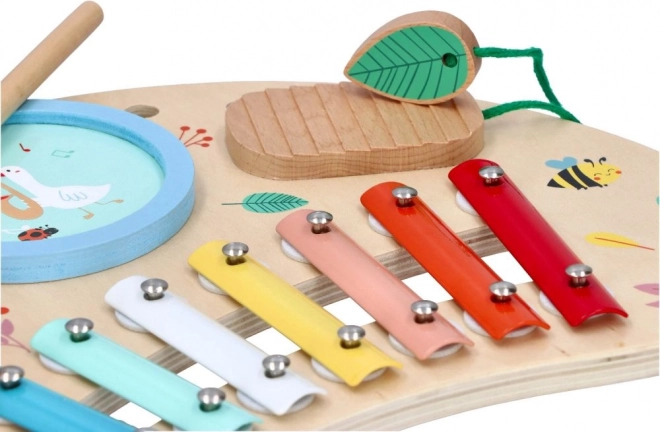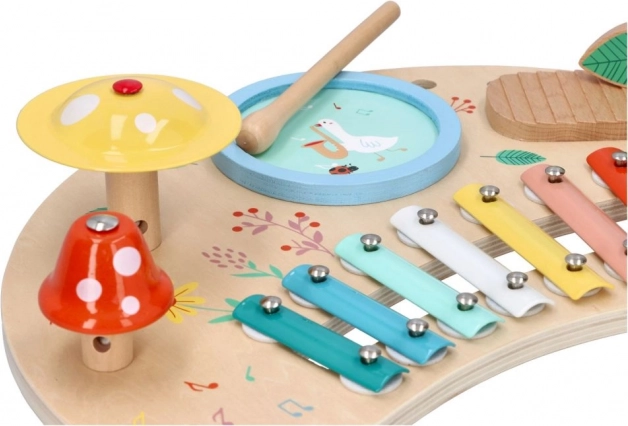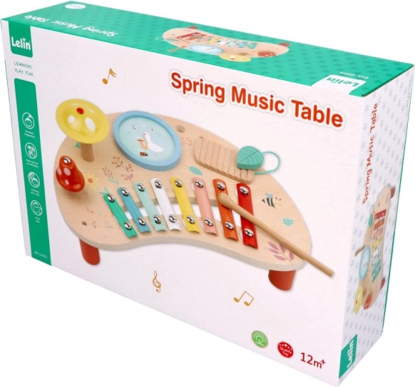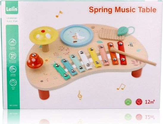 Lente Muziektafel is een geweldige keuze voor ouders die de muzikale ontwikkeling van hun kinderen willen ondersteunen. Deze houten tafel bevat kleurige metalen toetsen, een tambourijn en andere interactieve onderdelen die urenlang plezier garanderen. De houten standaard met vrolijke illustraties van bloemen en dieren zorgt voor een vriendelijke sfeer voor elk kind.