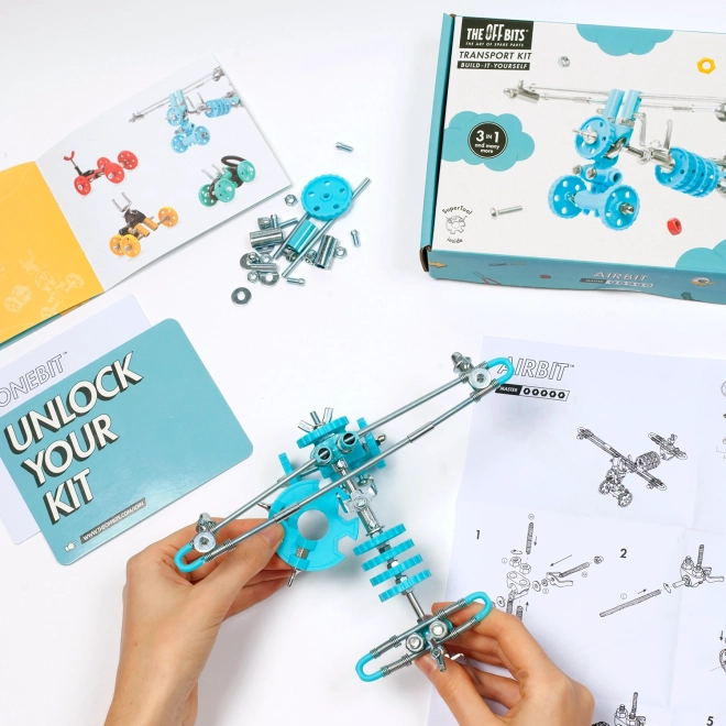 Ontdek de wereld van constructiespel met The OffBits VliegtuigBit – bouw een straalvliegtuig voor je robot, een racefiets of een utilitykarretje en creëer je eigen originele uitvindingen. De set bevat een gereedschap voor eenvoudig schroeven en slimme connectors die nauwkeurigheid en vaardigheid bevorderen.