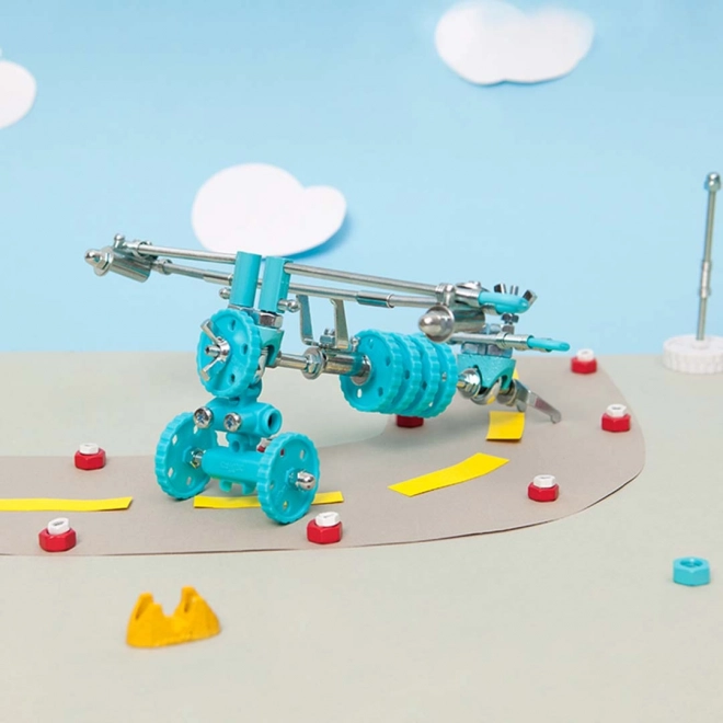 Verbind de onderdelen met karton, schroeven of andere alledaagse materialen en verleg de grenzen van je fantasie. Het spel ontwikkelt STEAM-vaardigheden (wetenschap, technologie, engineering, kunst, wiskunde) en versterkt ruimtelijk inzicht, probleemoplossend vermogen en fantasievol spel.