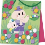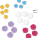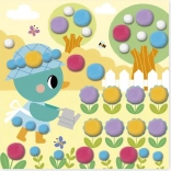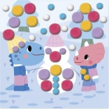 Kinderen plakken simpelweg pompons in de juiste kleur en maat op de aangegeven plaatsen volgens de instructies en de kleurcontouren op de afbeeldingen. Het voltooien van elke afbeelding duurt ongeveer 20 minuten, ideaal voor de geduld en concentratie van jonge kinderen.