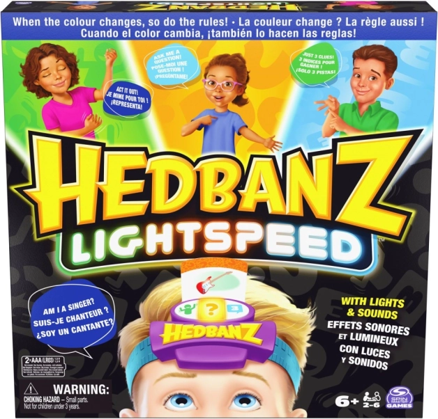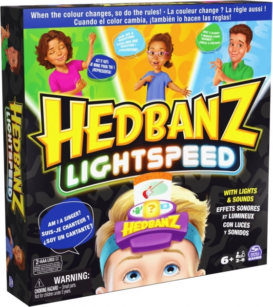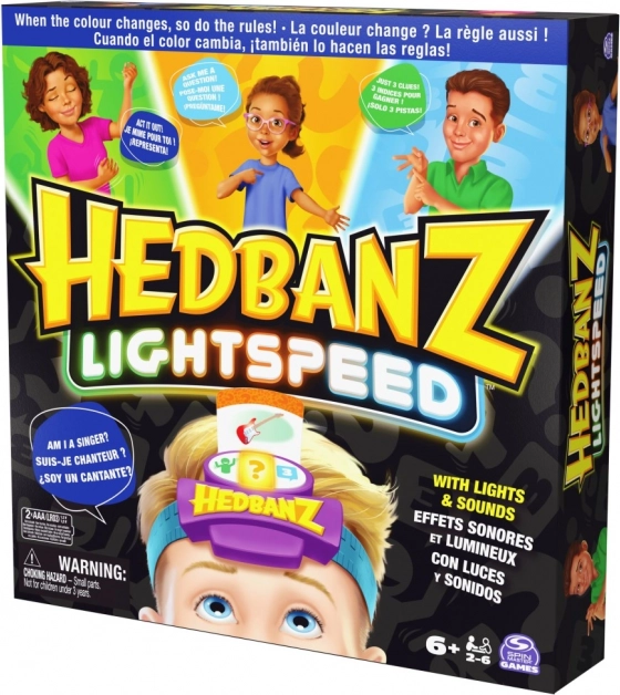 Hedbanz Lightspeed is een snel en leuk bordspel voor het hele gezin. Daag je vrienden uit voor een spannend raadspel met een elektronische hoofdband en ontdek wie de meeste punten scoort!