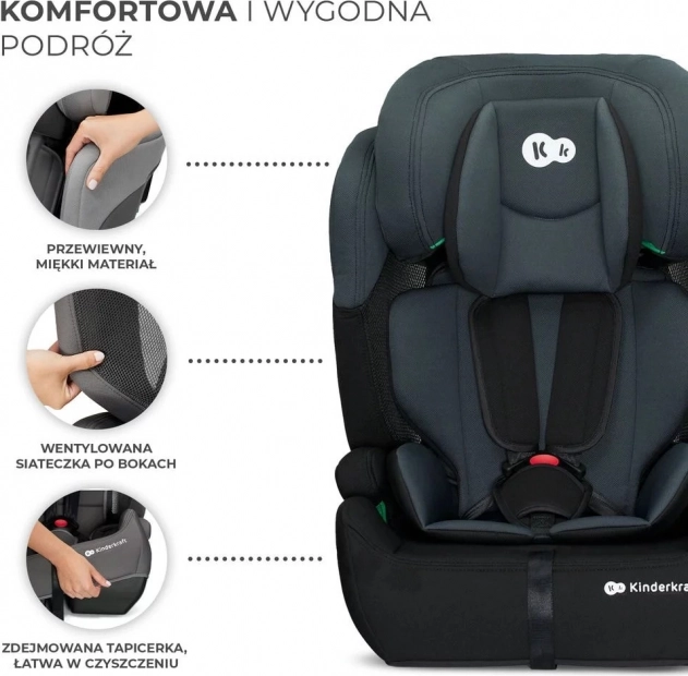 Dit is het autostoeltje COMFORT UP i-Size - een autostoeltje voor kinderen van 76 tot 150 cm hoog, dat voldoet aan de nieuwste norm R129 i-Size. Door het te kopen, kunt u er zeker van zijn dat uw kind voldoende beschermd is van ongeveer 15 maanden tot 12 jaar! Het is een universeel autostoeltje - het is ook geschikt voor auto's zonder ISOFIX-systeem. Dankzij de gelijktijdige instelling van de hoofdsteun en de veiligheidsgordels (11 posities) kunt u het eenvoudig aanpassen aan uw groeiende kind. De kleine passagiers wachten op een brede, diepe zitting en een verwijderbare modulaire inzet voor kleinere kinderen. Het stoeltje is uitgerust met 5-punts veiligheidsgordels met zachte bekleding, die u eenvoudig kunt opbergen als het tijd is om het kind vast te zetten met de 3-punts veiligheidsgordel. Het autostoeltje COMFORT UP i-Size zal u de komende 12 jaar vergezellen!