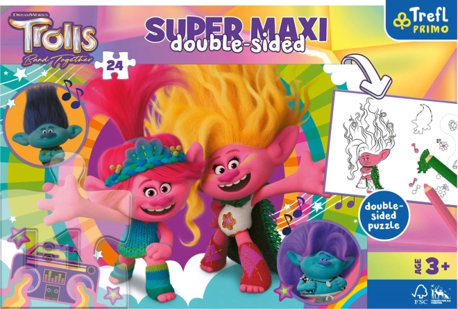 Deze 3-in-1 set van TREFL brengt kinderen veel plezier en creativiteit. Aan de ene kant staat een kleurrijk motief uit de film Trolls 3, aan de andere kant een zwart-witte kleurplaat en een leuke activiteit om te spelen. De grote stukjes zijn aangepast aan kinderhandjes en stimuleren geduld en concentratie.