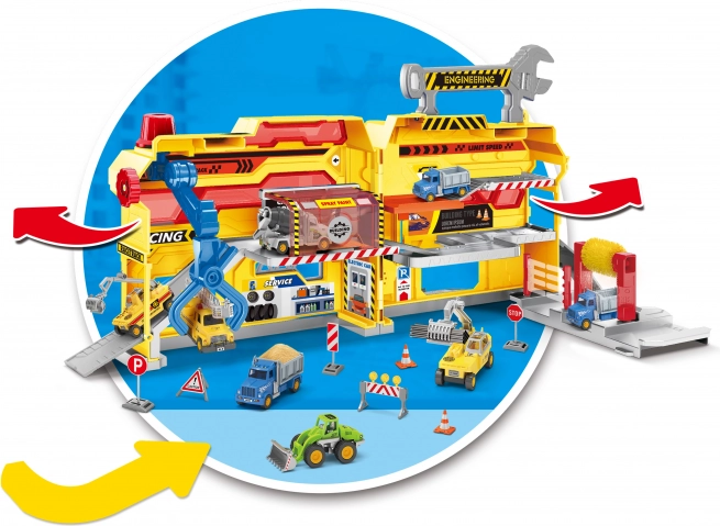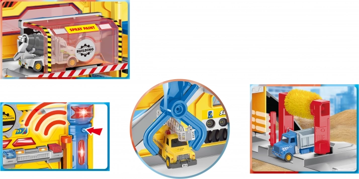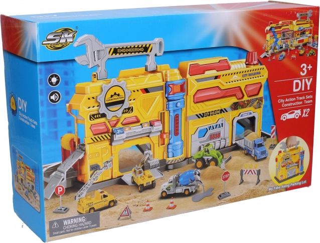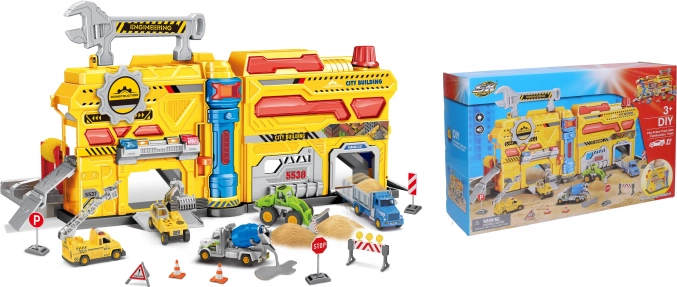 Een leuk en gemakkelijk mee te nemen bouwstation voor kleine bouwers met lichteffecten en geluidseffecten, twee vrijrollende autootjes en rijk accessoire. In de doos vind je verkeersborden, stickers en een geïllustreerde handleiding voor eenvoudig monteren. Ideaal cadeau om fantasie en motoriek te ontwikkelen.