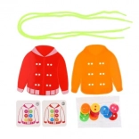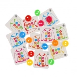 Educatief spel Knoop aannaaien is ontworpen om fijne motoriek te ontwikkelen en kinderen te leren kleuren te herkennen en te tellen. De set bevat: