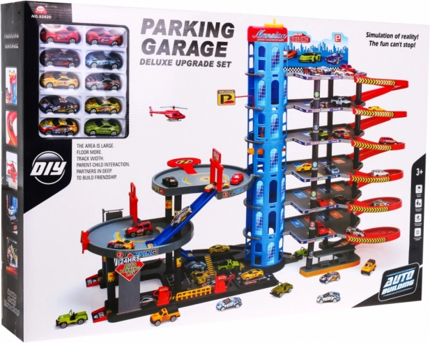 Kinderparkeerplaats met 7 verdiepingen met helikopter en 10 autootjes