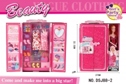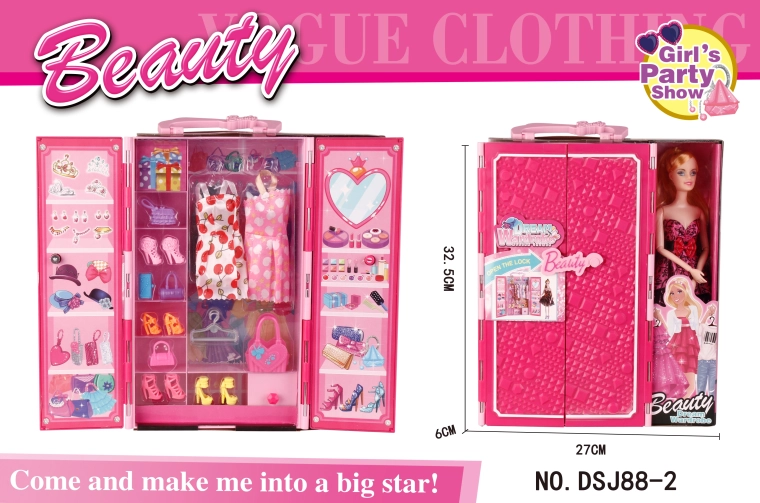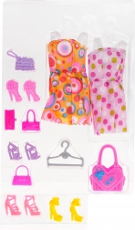 - Pop in galajurk, kledingkast met handgreep, 2× jurk, 5× handtas, 4× paar schoenen, 3× hanger, doos voor kleine spulletjes