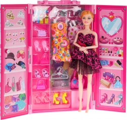 Inbegrepen zijn een pop in galajurk en een uitgebreide uitrusting: 2 jurken, 5 handtassen, 4 paar schoenen, 3 hangers en een doos voor kleine spulletjes. De kledingkast kan verder worden geopend voor beter overzicht en een stijlvolle presentatie van de outfits.