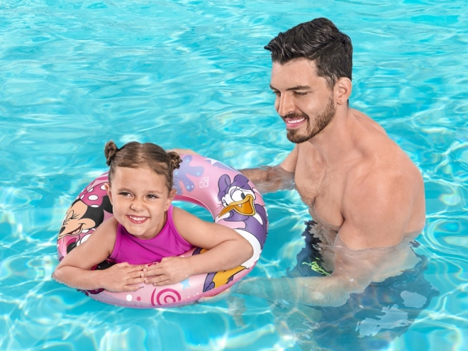 De opblaasbare ring met MINNIE en DAISY geeft kinderen vertrouwen bij het wennen aan water en ouders gemoedsrust dankzij de duurzame uitvoering. Het gladde oppervlak is gemakkelijk te reinigen, de terugslagklep voorkomt ongewenst luchtverlies en de diameter van 56 cm is ideaal voor kleuters.
