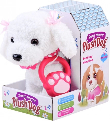 Een schattige interactieve hond aan de lijn die elk kind blij maakt. Reageert op aanraking, kan lopen, blaffen, met de staart kwispelen en zacht janken. Dankzij de zachte pluche uitvoering is hij ideaal om mee te knuffelen en zorgt hij voor uren creatief speelplezier. Interactieve functies, bediening via de lijn en aangename pluche maken van dit hondje een geweldige speelkameraad.