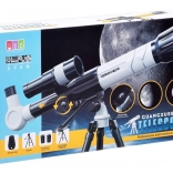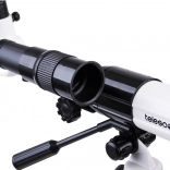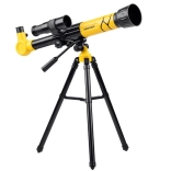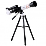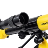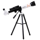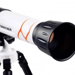 De kindertelescoop is een uitstekende start in de wereld van de astronomie – hij stimuleert nieuwsgierigheid en maakt comfortabel observeren van de maan, sterren en ook objecten op aarde mogelijk. Het lenzensysteem met schuine spiegel verbetert het contrast, vermindert optische fouten en levert een stabiel, rechtopstaand beeld. Dankzij de compacte lengte en het lichte ontwerp plaats je hem eenvoudig op een tafel en is hij in een mum van tijd klaar voor gebruik.
