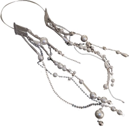 De haarband zorgt voor een verfijnde uitstraling dankzij de kunstparels en kettinkjes.