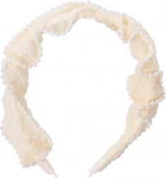 Deze witte haarband met kleine pareltjes is een stijlvol accessoire dat zelfs een eenvoudige outfit naar een hoger niveau tilt. De textiele afwerking met ruche-effect en de subtiele parelrand ogen elegant en toch verfijnd. Prachtig bij los haar, een staart of een knot.
