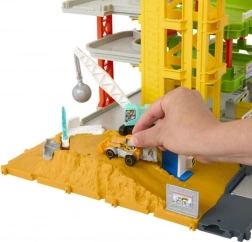 Gebruik de bijgeleverde kraan (50,5 cm) met een van de drie accessoires – een kist, platform of draagbaar 'toilet' – en verplaats deze over de bouwplaats. Inclusief een 1:64 Matchbox graafmachine, die je over de hele bouwplaats kunt laten rijden. Kleuren en decoraties kunnen variëren.