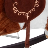 Deze stijlvolle schommelpony in donkerbruin combineert een klassieke uitstraling met moderne interactieve functies. Het zachte pluche voelt prettig aan, terwijl de houten schommelbasis stabiliteit en een vloeiende beweging biedt. Dankzij het zadel met stijgbeugels en de teugels zitten kinderen zekerder en is er meer speelplezier.