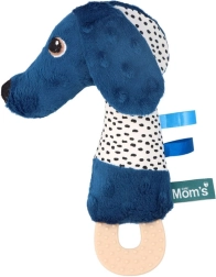 Jamiś is een superzachte knuffel die zowel vermaakt als kalmeert. Contrasterende materialen trekken de aandacht van pasgeborenen, de pieper en knisperende oortjes stimuleren het gehoor, terwijl de getextureerde siliconen bijtring het tandvlees zachtjes masseert bij doorkomende tandjes. Dankzij het lichte ontwerp en de gemakkelijk vast te pakken vorm is het ideaal voor kleine handjes.