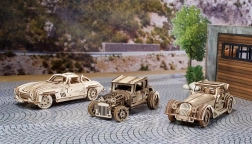 Betreed de wereld van iconische voertuigen met het houten model Winged Sports Coupe van Ugears. Dit model bootst het elegante ontwerp na van een klassieke sportauto met vleugeldeuren, wat een unieke bedieningservaring biedt. De auto heeft twee bedrijfsmodi: opwinden met behulp van een ratelsleutel of achteruit trekken op een vlakke ondergrond. Onder de motorkap bevindt zich een gedetailleerd motormodel dat toegankelijk is door de motorkap te openen.