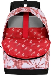Lichte stadsrugzak met Lilo & Stitch-motief in het rood, ideaal voor dagelijks praktisch gebruik. Biedt één vak met binnenvoering en een vak voor elektronische apparaten, een voorvak voor kleine spullen, verstelbare gewatteerde schouderbanden voor comfort en een achterste trolleyband voor gemakkelijk reizen. Het duurzame polyestermateriaal zorgt voor een lange levensduur.