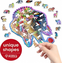 We presenteren u de unieke houten puzzel Elegante olifant van het merk WOODEN CITY. Dankzij de speciaal gevormde stukjes met diermotieven, is het samenstellen ervan een grotere uitdaging dan bij gewone puzzels.