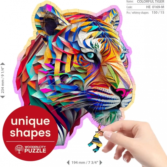 Geniet van het leggen van een originele houten puzzel met het motief van een kleurrijke tijger van WOODEN CITY. Dankzij de uniek gevormde stukjes, inclusief dierensilhouetten, en de precisie van laserbewerking biedt deze puzzel een hogere moeilijkheidsgraad en een geweldige ervaring. De puzzel is eco‑friendly, zonder plastic verpakkingen, en is een fantastisch cadeau voor elke gelegenheid.