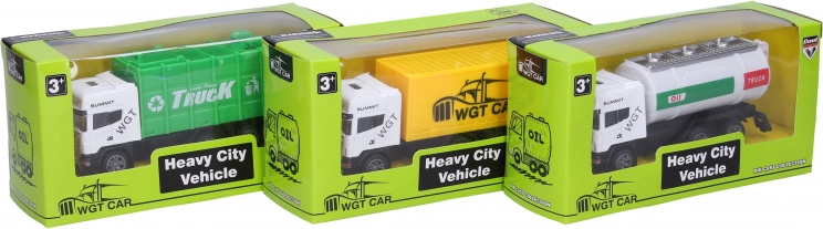 - Drie varianten: vrachtwagen, tankwagen, vuilniswagen.