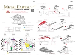 Haal de afzonderlijke onderdelen uit de metalen plaatjes; gebruik indien nodig kleine zijkniptangetjes (niet inbegrepen). De onderdelen worden met elkaar verbonden via vergrendelingen die bestaan uit een lipje en een opening. Buig het lipje om met kleine, fijne tangetjes (niet inbegrepen) en verbind stap voor stap alle vergrendelingen totdat er een zeer realistisch meesterwerk ontstaat!