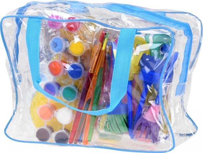 Doorzichtige tas met ritssluiting voor eenvoudige organisatie en transport van schildersbenodigdheden.