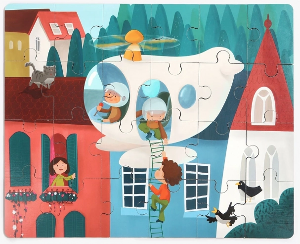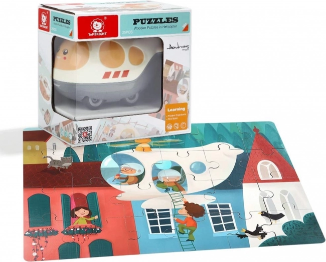 Houten puzzel met speelgoedhelikopter 24 stukjes TOP BRIGHT