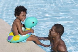 De band helpt het kind boven water te blijven en beperkt tegelijkertijd de bewegingsvrijheid niet tijdens waterspelletjes.