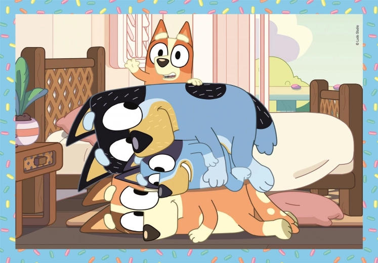 Puzzel 4 in 1 BLUEY van Clementoni: hoogwaardige druk, precies passende stukjes, ontwikkeling van motoriek en concentratie. Grote pret voor kinderen en volwassenen.