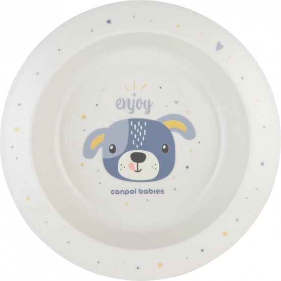 De praktische plastic kom Canpol babies Cute Animals met een inhoud van 270 ml en een hondje-motief maakt de eerste hapjes plezieriger. Hij is licht, stevig en onbreekbaar, heeft een verhoogde rand voor makkelijker opscheppen en een praktische vorm voor comfortabel vasthouden. Geschikt vanaf 4 maanden, vaatwasserbestendig en magnetronbestendig, bevat geen BPA.