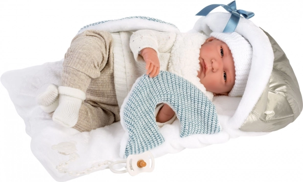 Deze elegante NEW BORN poppenoutfit valt op door de zorgvuldige afwerking en het tijdloze design. In de set vind je op elkaar afgestemde gebreide en textiele items voor dagelijks en winterstyling, aangevuld met een zachte mat met capuchon en praktische riemen, zodat je de pop eenvoudig kunt meenemen.