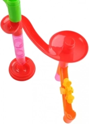 Spelen met de baan ontwikkelt logisch redeneren, begrip van oorzaak en gevolg en de basisprincipes van zwaartekracht en snelheid. Kinderen observeren de beweging van de knikkers, testen verschillende opstellingen en versterken ondertussen geduld, creativiteit en fijne motoriek.
