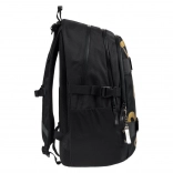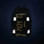De rugzak is gemaakt van sterk en waterdicht materiaal, wat zorgt voor zijn bestendigheid tegen ongunstige weersomstandigheden. Reflecterende elementen bieden extra veiligheid en de metalen sleutelhanger in de vorm van een skateboard completeert het moderne ontwerp van deze praktische rugzak.