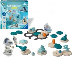 Uitbreiding IJzige Avonturen is een aanvulling op elke GraviTrax Junior startset. Het bevat meer dan dertig diverse elementen waarmee je een baan kunt bouwen die door ijzige, arctische gebieden loopt! De kunststof knikker gaat onder een iglo door en door een ijsgrot, en komt onderweg vrolijke dieren tegen!