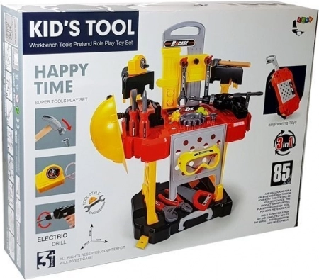 Gemakkelijk draagbare kinderwerkbank met 85 onderdelen is het perfecte cadeau voor kleine doe-het-zelvers. Stimuleert de ontwikkeling van kinderlijke coördinatie en logisch denken.
