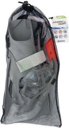 De vinnen hebben een zachte voetpocket en een verstelbare hielband, waardoor ze stevig zitten en niet van de voet glijden. De maat 41–46 dekt het merendeel van volwassen gebruikers. De hele set is gemakkelijk mee te nemen en direct klaar voor jouw wateravonturen.