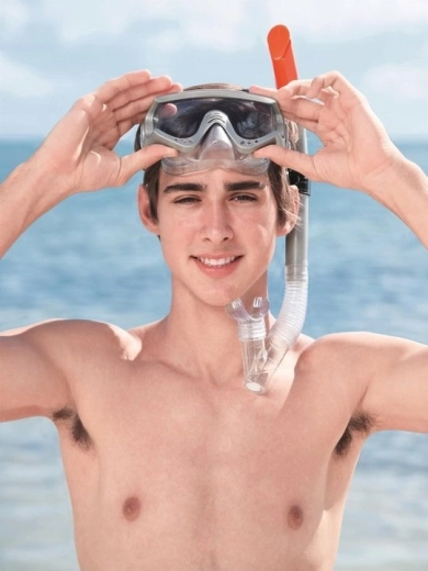 Deze complete grijze set is ideaal voor recreatief snorkelen aan zee of in het meer. Het masker met duurzaam gehard glas biedt helder zicht onder water, terwijl de siliconen skirt zich betrouwbaar aan het gezicht aanpast zonder oncomfortabele druk. De snorkel met dry-tube technologie minimaliseert waterinlaat, zodat je ontspannen aan het oppervlak kunt ademen.