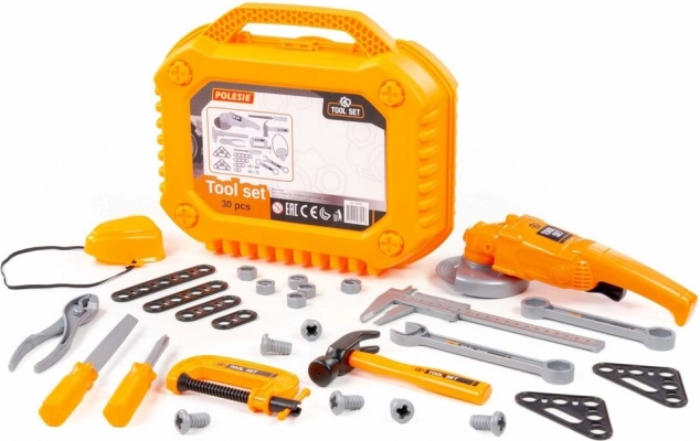 Kinder gereedschapskoffer 30 stuks met slijper, oranje