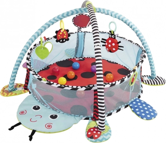 Speelmat in de vorm van een lieveheersbeestje, 2 speelbogen met hangspeeltjes, 30 ballen