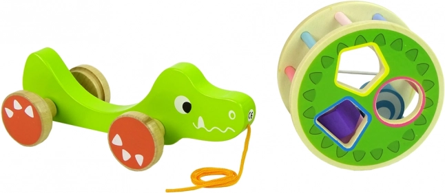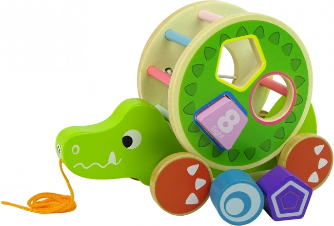 Dit houten trekspeeltje in de vorm van een krokodil is ideaal voor de ontwikkeling van kinderen, het combineert plezier met leren en ondersteunt de motoriek en het herkennen van vormen en kleuren. Zorgt voor de juiste ontwikkeling van uw kind!