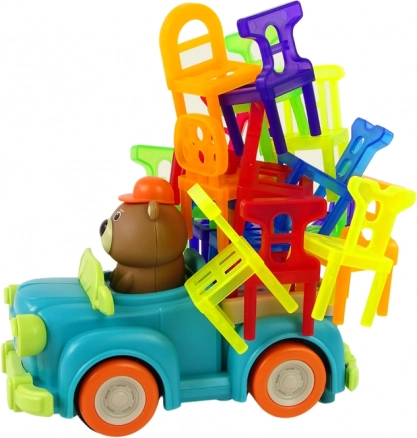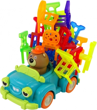 Een leuk familiespel waarbij je gekleurde stoeltjes stapelt op een rijdend autootje om de hoogste toren te bouwen. Oefent fijne motoriek, oog-handcoördinatie, logisch denken en geduld. Dankzij 48 stoeltjes in vrolijke kleuren en eenvoudige regels ideaal voor kinderen vanaf 3 jaar en volwassenen.