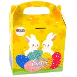 Praktische geschenkverpakking met konijnen en eieren, gemakkelijk te dragen dankzij het handvat. Ideaal paascadeau voor kinderen.