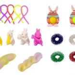 Verras kinderen met een vrolijke paasset vol sensorisch speelgoed dat helpt bij concentratie en ontspanning. De set biedt diverse texturen, vormen en speelmogelijkheden – van knijpen en klikken tot rekken – voor stressverlichting, ontwikkeling van de fijne motoriek en creatief denken. Gemaakt van veilige, niet-giftige materialen, ideaal voor kinderen vanaf 3 jaar.