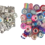 De verpakking bevat dertig plastic kralen en zestig zilveren en gouden kralen met vrolijke motieven. Ontworpen voor het maken van creatieve en persoonlijke armbanden.