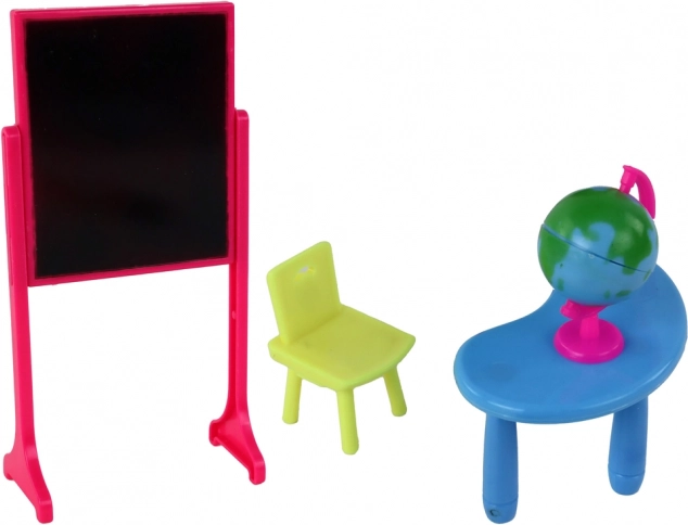 Bovendien bevat de set een tafel en stoel, waarop de poppen comfortabel kunnen zitten om de schoolomgeving perfect na te bootsen.